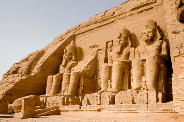 No visit to Egypt is complete without witnessing the awe-inspiring Abu Simbel, where the colossal statues of Ramses II guard the entrance to this temple, carved out of the mountain. Inside, the alignment of the sun illuminates the inner sanctum twice a year, in a celestial spectacle that celebrates the divine pharaoh's power and the gods he worshipped.